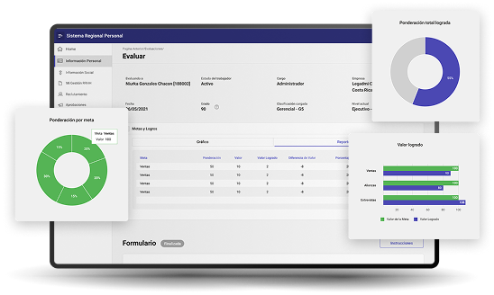 Integre perfectamente la evaluación de competencias con el cumplimiento de objetivos, obteniendo una visión holística del rendimiento que combina el «cómo» con el «qué» de cada colaborador.